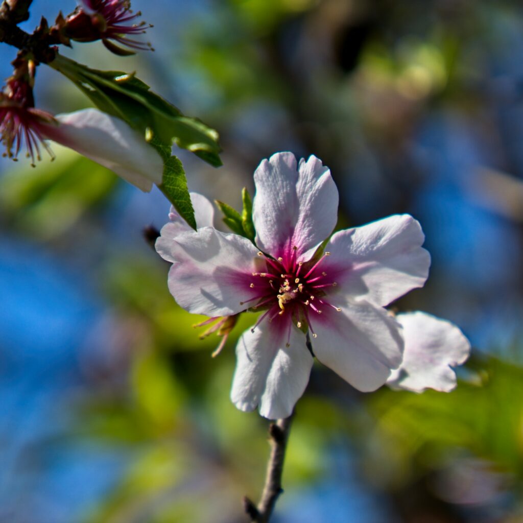 Nach etwa einer Stunde seichter Abfahrt bemerken wir, dass wir Tinos Handy auf dem Campingplatz vergessen haben. Nach einem kurzen Schlucken geht es zurück und dann noch mal von vorne los. Wir nutzen die Strecke, um Blumenbilder für einen Frühjahrsgruß nach Deutschland zu sammeln und so vergeht die Zeit gefühlt schneller als beim ersten Mal.
