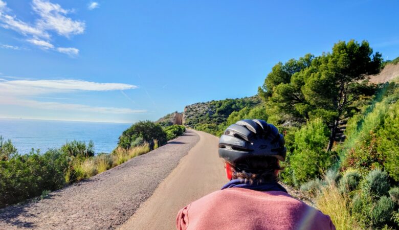 Seit Spanien sind wir vom Abenteuermodus in den Urlaubsmodus gewechselt. Das warme Wetter, die unbedrohlich wirkenden Straßen und die zahllosen geöffneten Campingplätze, die uns die Nächte komfortabel und kostengünstig sichern, tragen ihren Teil dazu bei. Außerdem wissen die Spanier (im Gegensatz zu den Italienern), wie man die Küstenlinie attraktiv gestaltet. Es gibt mehr potenzielle Pausenplätze, als wir nutzen könnten. Unsere heutige Strecke führt auf einem alten Bahndamm entlang, weit ab vom motorisierten Verkehr. Am Abend verwerten wir endlich den letzten Teil des Blumenkohls (Wahnsinn wie ergiebig er für uns war) und lassen die letzte Kerze unseres “Adventskranzes“ ausbrennen, während wir ein paar Lieder anstimmen.